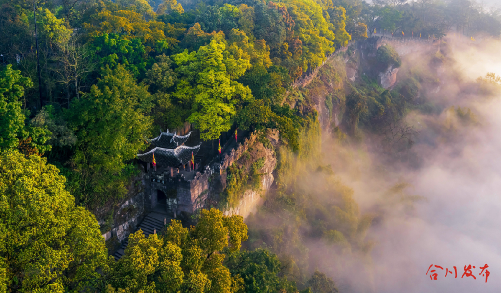 钓鱼城的峭壁危崖,是“雄奇”二字最震撼的写照。这座矗立在嘉陵江畔的古城,以“独钓中原”的壮举,创造了世界战争史上的奇迹。三十六年间,合川军民凭借陡峭山势构筑城防,以“一夫当关”之勇毅对抗“横扫欧亚”的蒙古铁骑,用智慧与血性诠释了“坚韧不拔、忠贞不屈”的精神内核。如今,当游客抚摸城墙上的岁月痕迹,凝视护国门上的斑驳题刻,感受到的不仅是自然雄奇,更是一座城池在生死存亡之际淬炼出的精神脊梁。这与重庆城市精神中“坚韧、忠勇”的品格一脉相承,成为合川人守护家园、开拓进取的永恒动力。